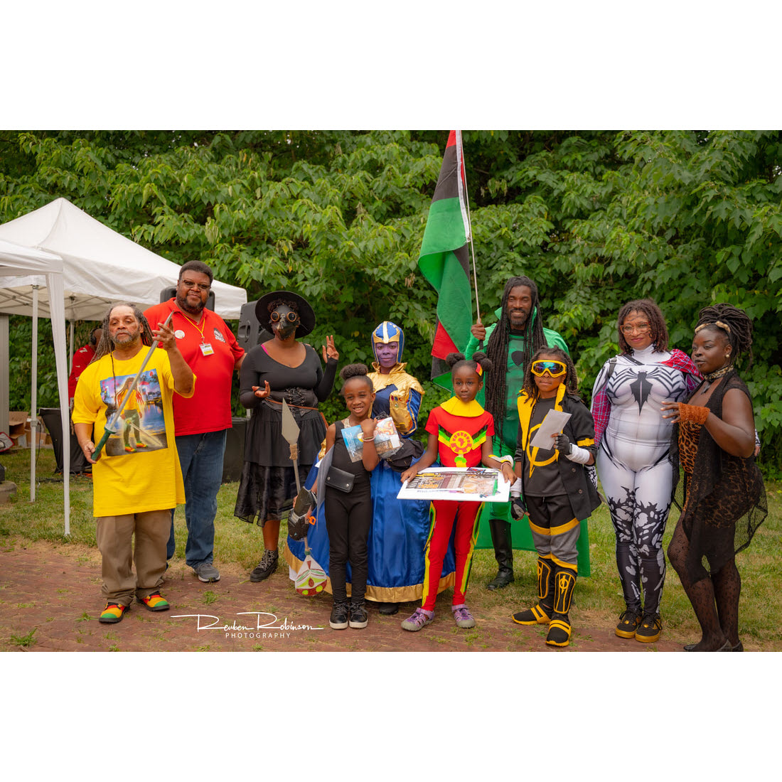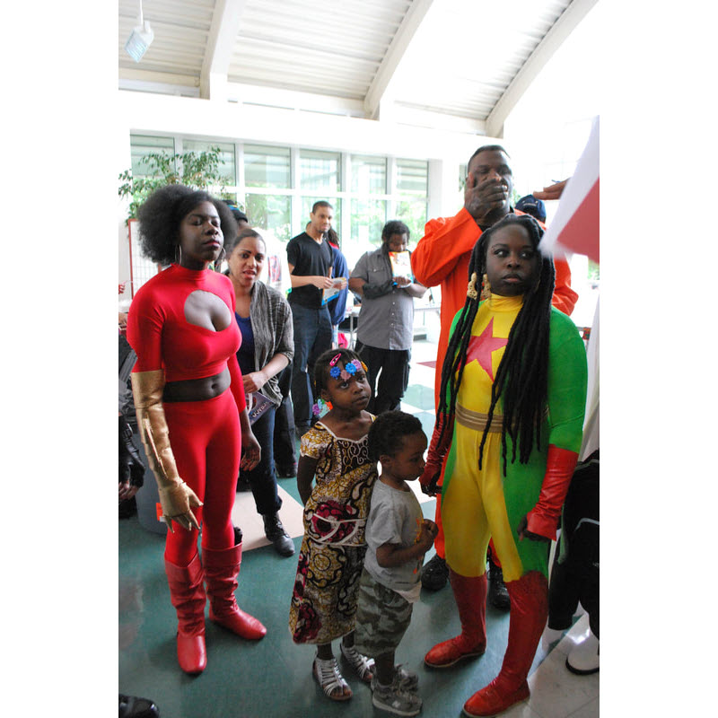 The AFRICOZ costume contest is held annually at The East Coast Black Age of Comics Convention. It serves as a new way in which ECBACC fulfills its mission of celebrating positive images of Blacks (African-descended people) in the comic book and sci-fi industry. “AfriCoz” cosplay is defined as pop-culture cosplay with a cultural or aesthetic focus on portrayals of Black characters. “AfriCoz” not only celebrates Black characters but also allows costumers and cosplayers of African descent to fully engage the recreation of fantasy costuming without the cultural biases that brand Black characters as second-rate, inferior, and/or unpopular. A costumer who costumes as a character of Black or African descent is described as an Africozer or and Africozplayer!